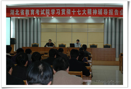 2007年12月27日下午,省政協委員、武漢市政府參事、武漢大學教授周長城應邀來我院作學習貫徹十七大精神輔導報告。全院干部職工聆聽了報告。