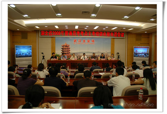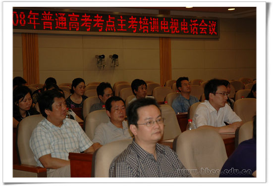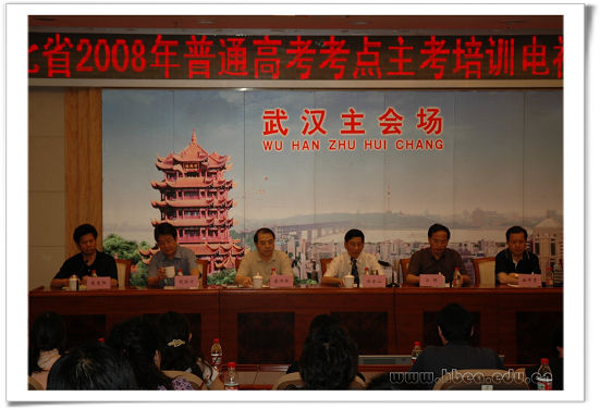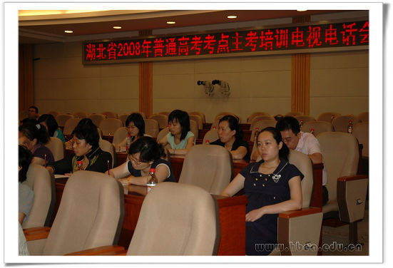 2008年5月20日,我省召開2008年普通高考考點主考培訓電視電話會議。大會由省教育考試院院長江暢主持,省委高校工委委員、省教育廳黨組成員、省教育考試院黨委書記徐金山到會并講話。省教育考試院高考辦主任助理張愛陽對高考主考工作進行了業(yè)務培訓。在主席臺就座的還有省教育考試院副院長岳傳林、徐澤貴、胡勝方和高考辦主任吳容靖。省教育考試院干部職工和各市(州)、縣(市、區(qū))教育考試機構負責人、考點主考分別在武漢主會場和當地分會場出席。