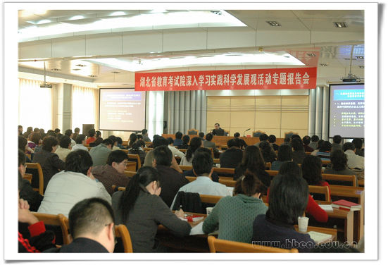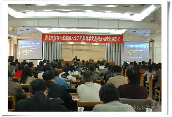 2008年10月28日下午,武漢大學黨委書記顧海良教授應邀來我院作深入學習實踐科學發展觀活動專題報告。報告會由黨委書記、院長江暢主持,全院干部職工、《湖北招生考試》雜志社全體工作人員、其他院屬單位部門以上負責人共180多人聆聽報告。