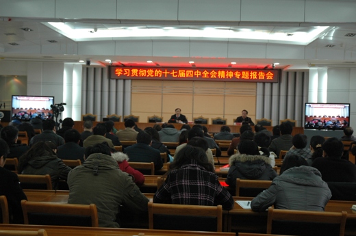 12月23日上午,省委宣傳部副部長余立國來我院作學習貫徹黨的十七屆四中全會專題報告,全院干部職工及院屬單位負責人參加報告會。報告由院黨委書記、院長江暢主持。