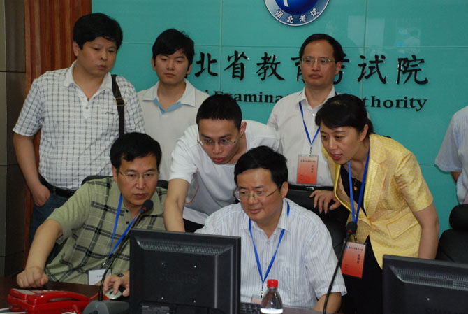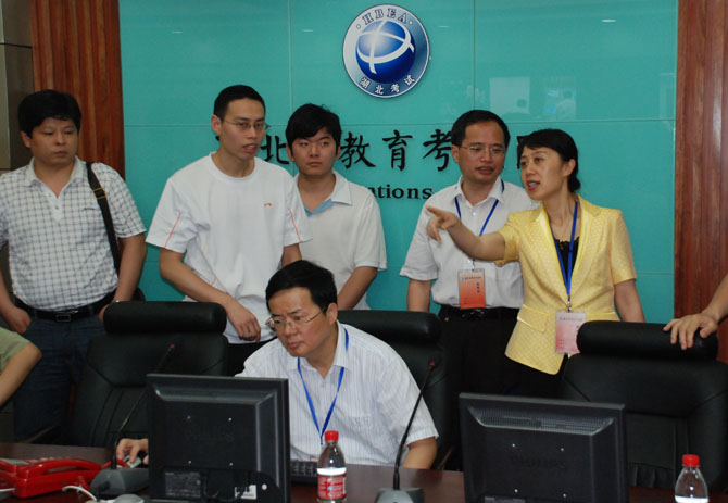 郭省長一行先后來到武漢市第十五中學、水果湖中學高考考點進行視察。郭省長充分肯定了武漢市在高考安檢、考場監控等方面的做法,積累了許多先進的經驗。他要求,全省各級政府部門和考點采取有力措施保障高考安全,創造良好的考試環境,做好考生的服務工作,確保今年高考工作的安全平穩。隨后,郭省長來到省教育考試院高考總值班室,向工作人員詳細了解了全省高考的進行情況,并通過考場監控視頻視察了考場和試卷保管情況。他指出,高考工作關系重大,全體高考工作人員身上的責任也很重,切不可掉以輕心,一定要做好各項準備,確保高考萬無一失。