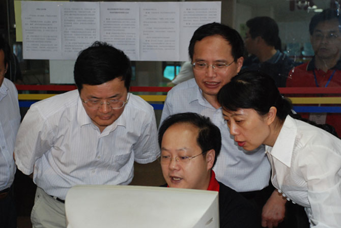 6月13日上午,湖北省副省長郭生練在省教育廳廳長陳安麗,省教育考試院黨委書記、院長江暢等陪同下,視察了2010年普通高考評卷現場。