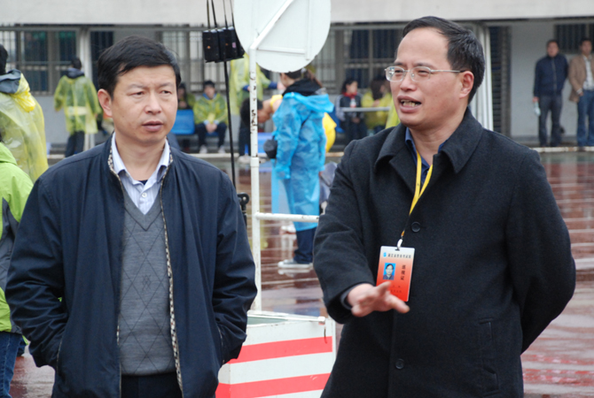 王安懷、江暢、徐澤貴等詳細(xì)了解了考試的報(bào)名情況、考場(chǎng)設(shè)置和考試組織工作等具體環(huán)節(jié),并冒雨到體育場(chǎng)館實(shí)地巡查測(cè)試的全過(guò)程,對(duì)全體考試工作人員克服不良天氣影響,嚴(yán)肅認(rèn)真履行職責(zé)的精神給予高度評(píng)價(jià),并強(qiáng)調(diào)要做好各項(xiàng)安全工作,保證考試的公平公正。