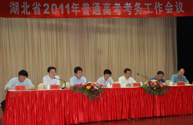 4月27-28日,湖北省召開2011年普通高考考務工作會議,湖北省教育廳副廳長黃儉出席會議并講話。會議由湖北省教育考試院黨委書記、院長江暢主持,副巡視員胡勝方、院長助理劉曉林與會,院高考辦及各市(州)、縣(市、區)教育局、招考辦負責人出席會議。