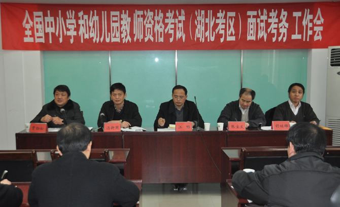 12月22日,全國中小學和幼兒園教師資格考試(湖北考區)面試考務工作會在漢召開。教育部考試中心湯新國副處長,張寶發副處長,湖北省教育考試院院長江暢,綜合考試辦公室主任賈勁松等出席會議。會議由賈勁松同志主持。