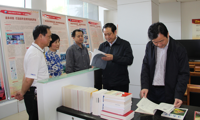 劉傳鐵廳長一行察看了我院考生服務大廳和國家教育考試省級考務指揮中心,參觀了省教育考試院發展成果展,聽取了省教育考試院、省招辦關于教育考試和招生工作的匯報并作重要講話。會上,劉傳鐵廳長和徐雁冰副廳長還現場答復了省教育考試院、省招辦提出的意見和建議。