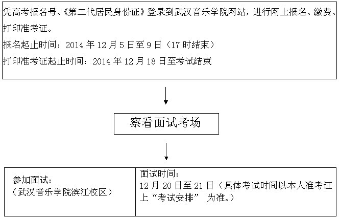 5、打印準考證:請考生于2014年12月18日至考試結束,登錄武漢音樂學院招生考試網自行打印準考證。