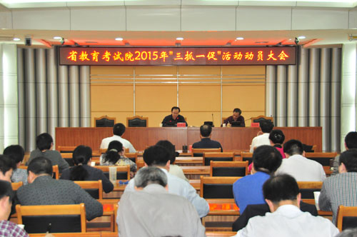 4月1日,我院召開“抓學習、抓作風、抓黨建、促改革發展”活動動員大會。省教育廳黨組成員、省教育考試院院長劉榮山作動員講話,省教育考試院副巡視員徐澤貴、副院長黃恩育、霍偉華出席,會議由院紀委書記劉曉林主持,院全體干部職工及直屬單位負責同志參加。