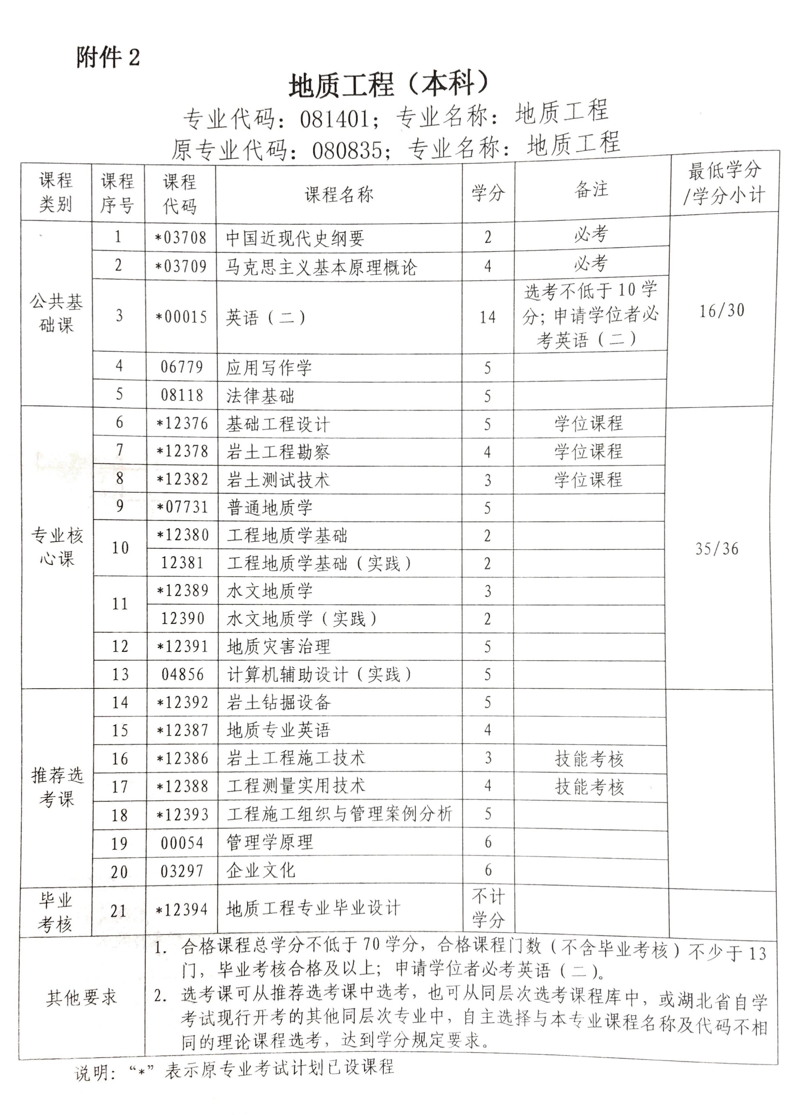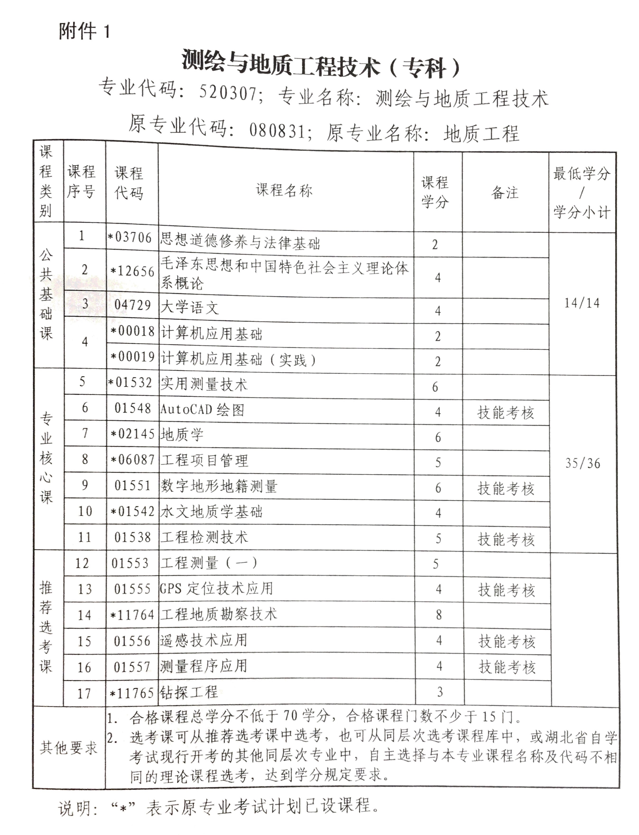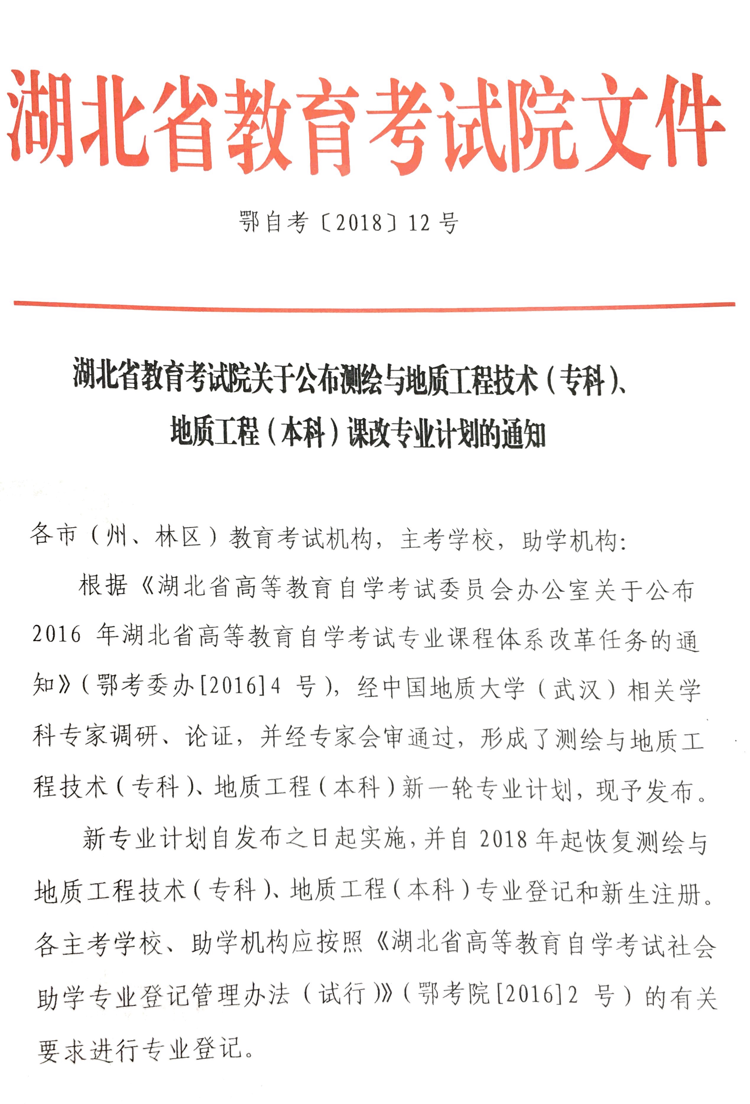 關于公布測繪與地質工程技術(??疲?、地質工程(本科)課改專業計劃的通知