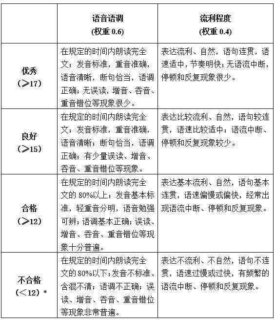 (一)“短文朗讀”的評分標準