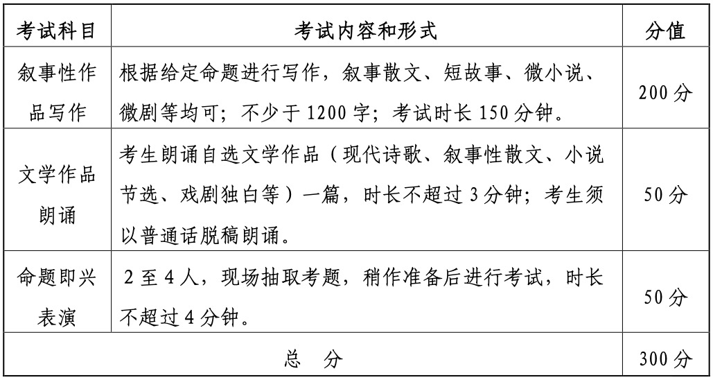 (5)考試:每位考生在一個面試考室一次性完成考試,包括文學作品朗誦和命題即興表演兩個科目。命題即興表演為現場抽取試題。